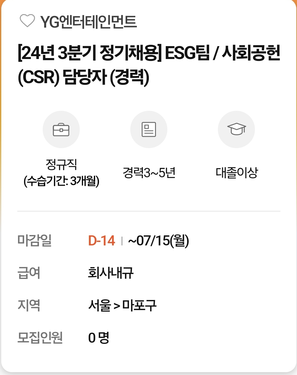 YG엔터테인먼트-CSR 담당 채용