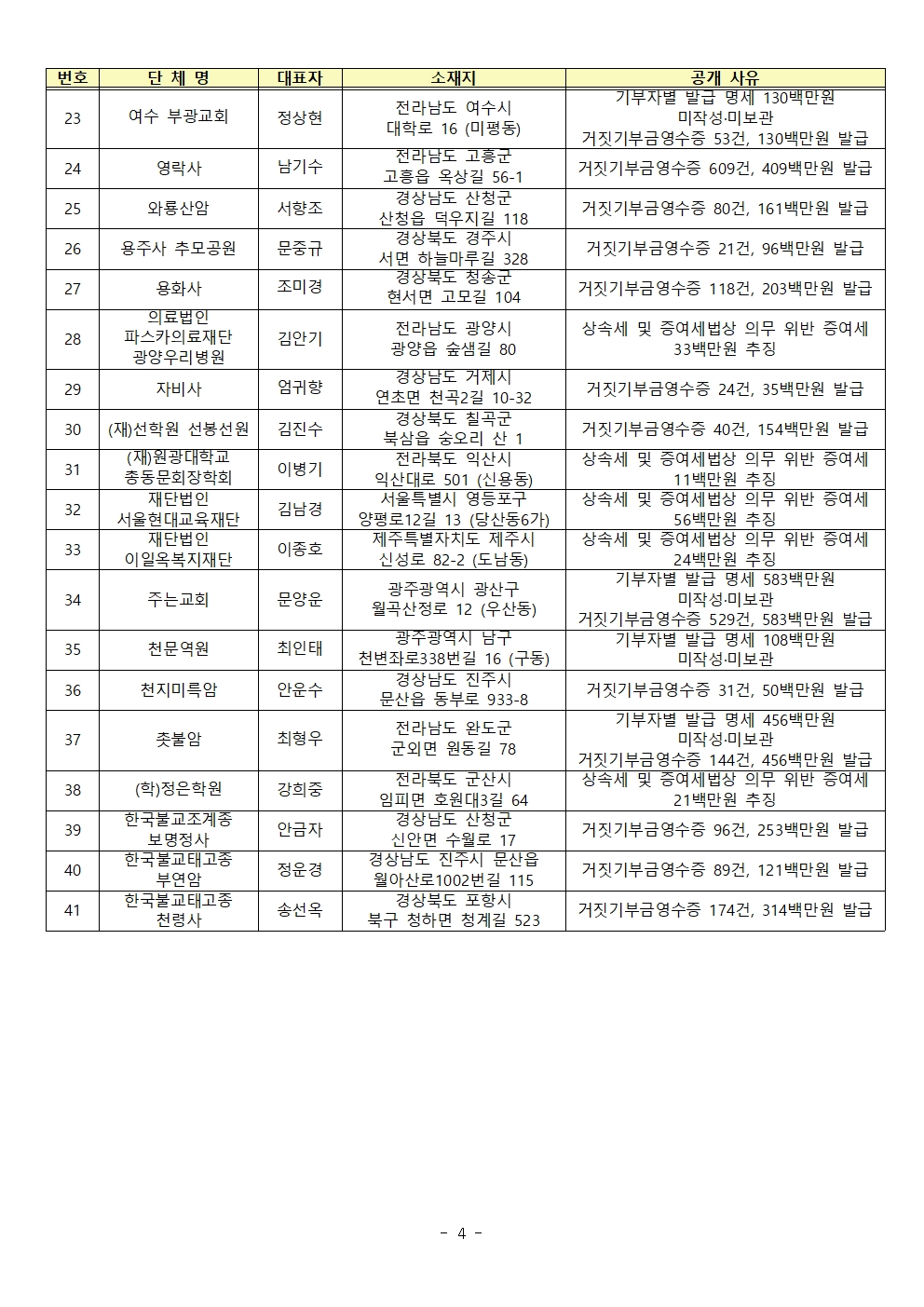 불성실 기부금수령단체 명단공개 요건