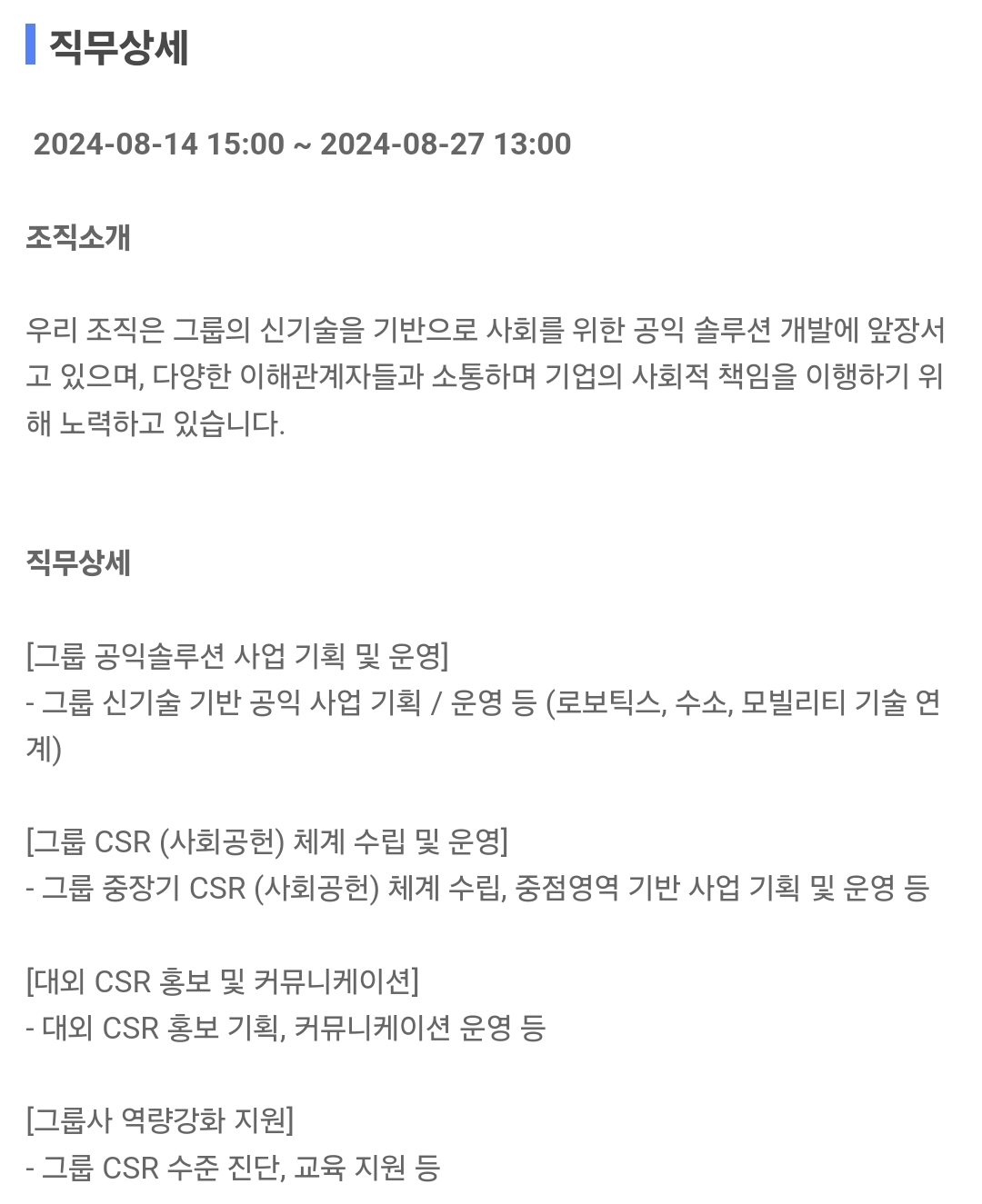 기아(주) 그룹 CSR(사회공헌) 담당자 채용