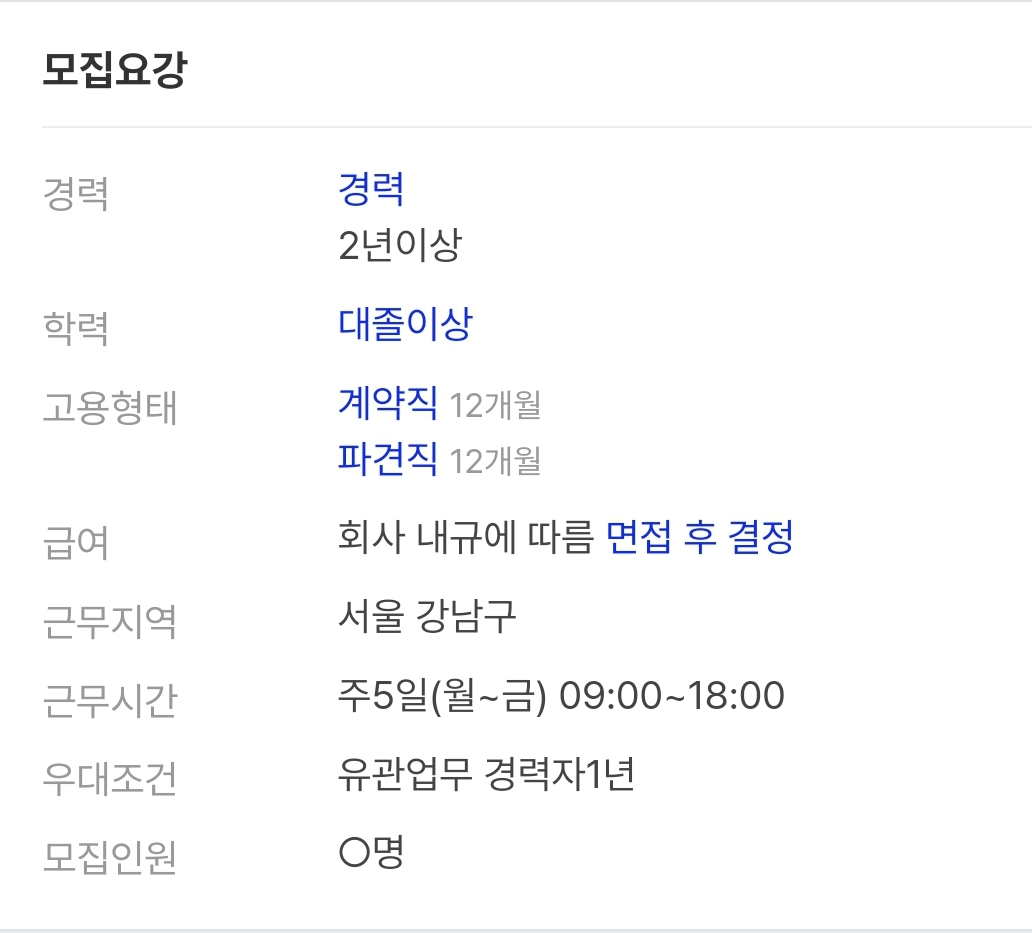 😎회사명이 없이 헤드헌팅 업체를 통한 채용정보는 공유하지 않습니다.