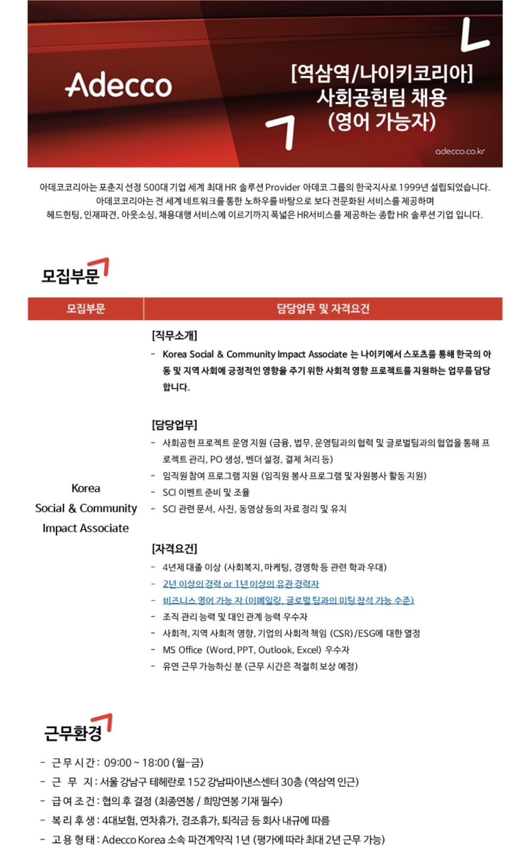 나이키코리아-사회공헌팀 채용
