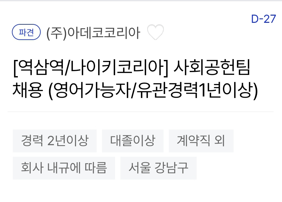 | 기아(주) 그룹 CSR(사회공헌) 담당자 채용 (0) | 2024.08.22 |