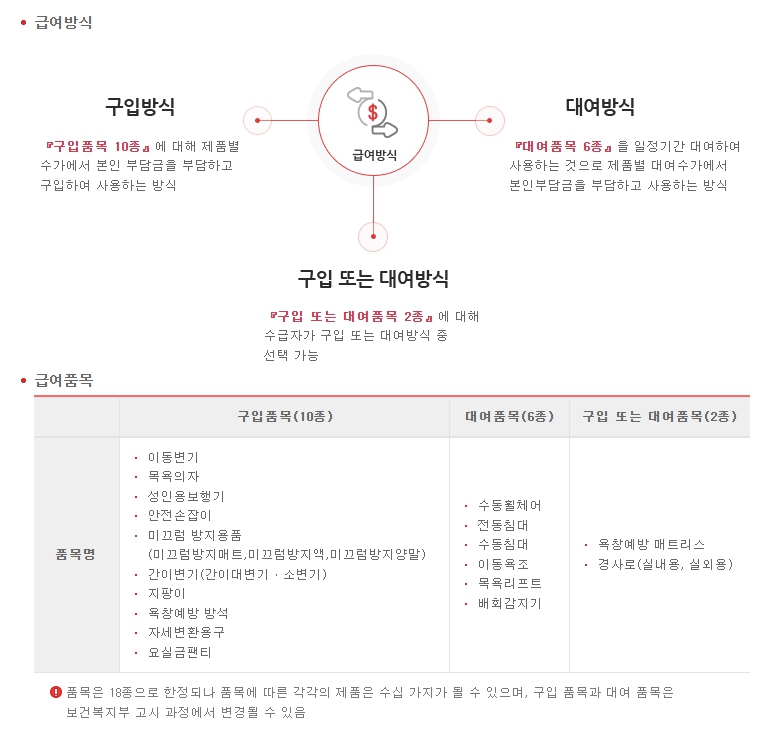 - 급여기준 : 사용 가능 햇수가 정해진 품목은 재료의 재질·형태·기능 및 종류를 불문하고 사용 가능 햇수 내에서 품목당