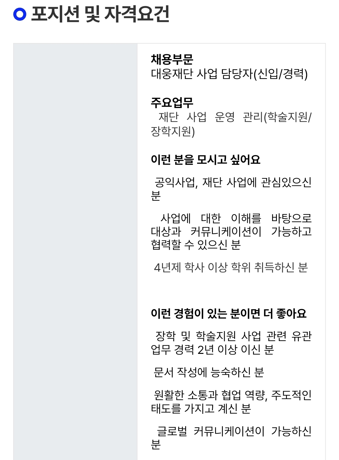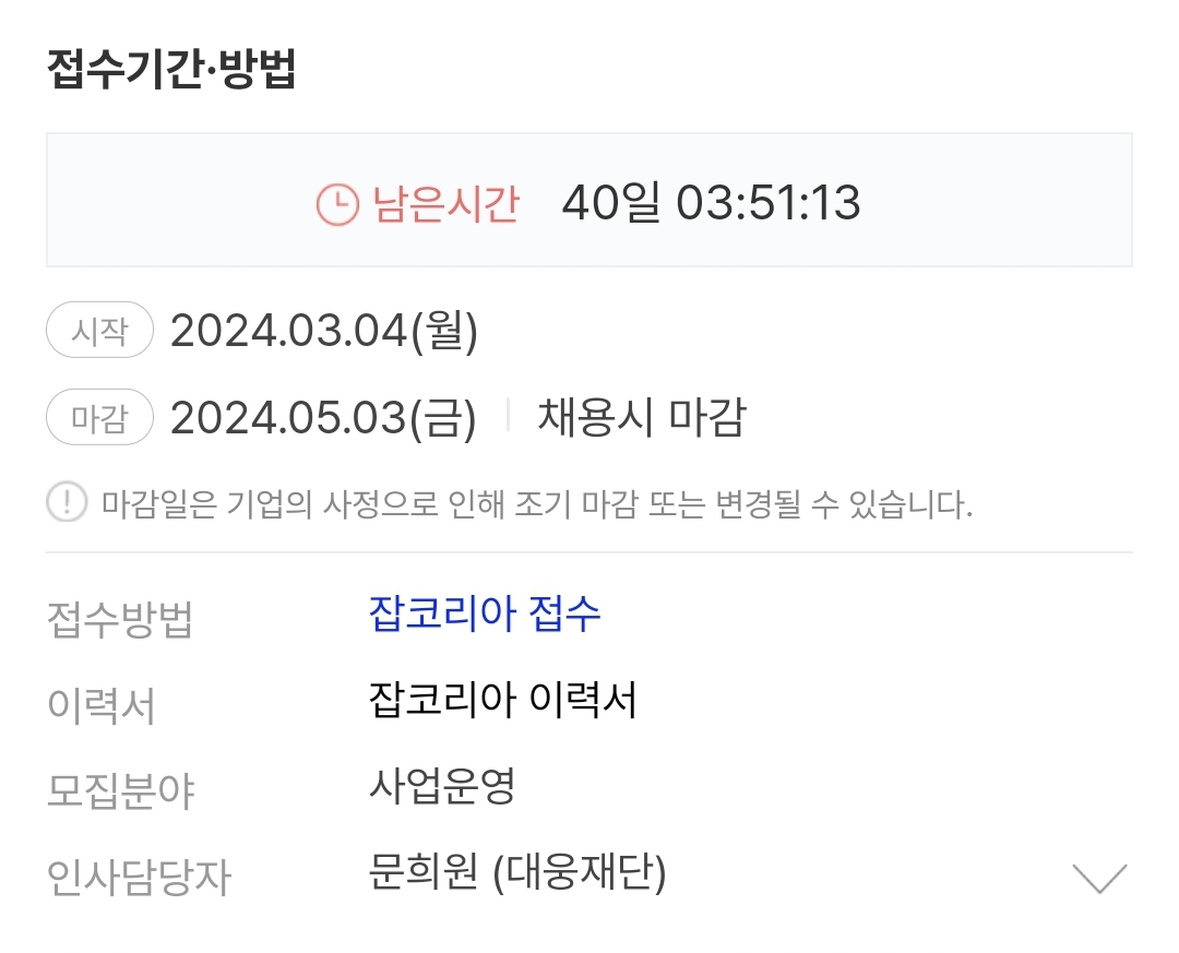 | 대웅재단-사무국장 채용 (0) | 2024.03.24 |