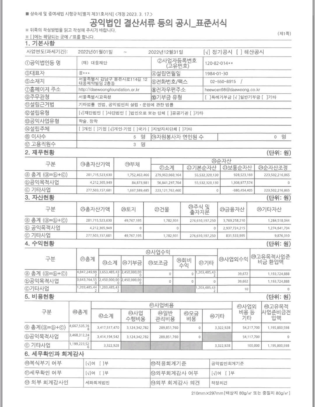 2022년 공익법인결산 공시 내용을 첨부드리오니 채용에 관심 있는 분들은 참고하시기 바랍니다.