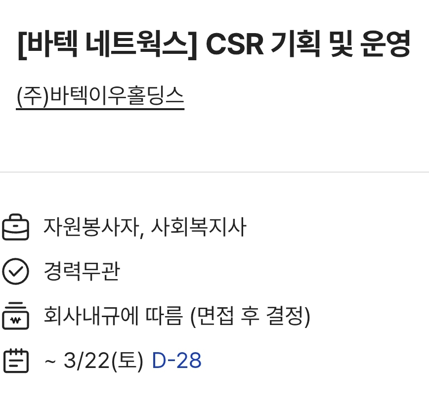 | 이노션-사회공헌 담당 계약직 채용 (0) | 2025.02.14 |