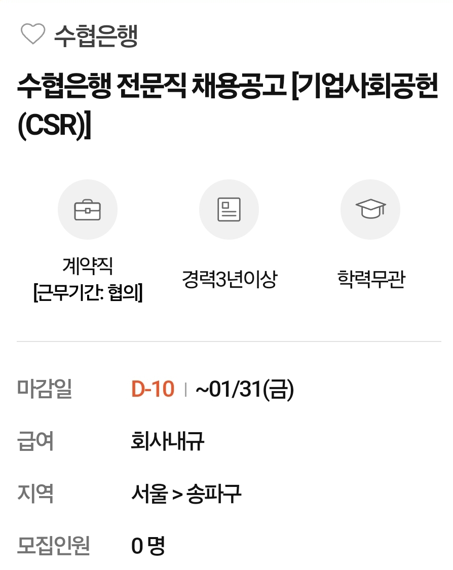 | 현대건설-파견직(1년)-CSR담당 (0) | 2025.01.09 |