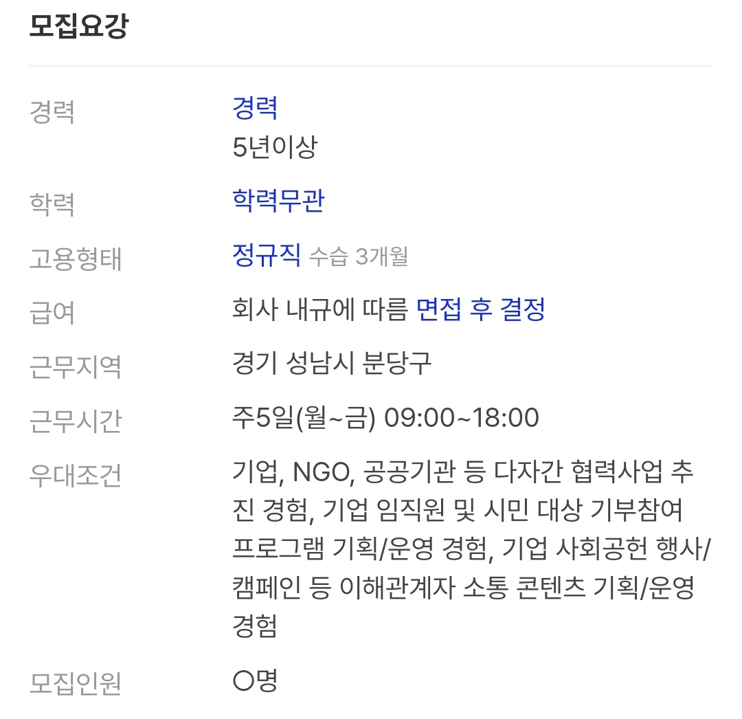 😎회사명이 없이 헤드헌팅 업체를 통한 채용정보는 공유하지 않습니다.