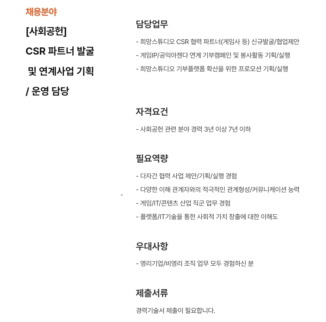 ◆ CSR 파트너 발굴 및 연계 사업 기획 운영 담당