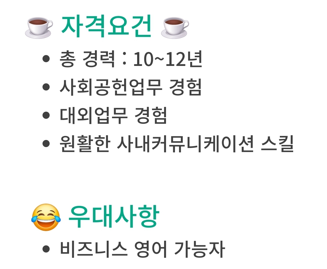 글로벌 식음료 기업 - ESG팀 사회공헌 CSR 경력자 채용 (0) | 2024.01.31 |