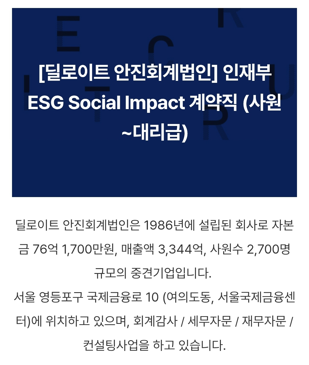 😎회사명이 없이 헤드헌팅 업체를 통한 채용정보 또는 단기계약직 등은 공유하지 않습니다.