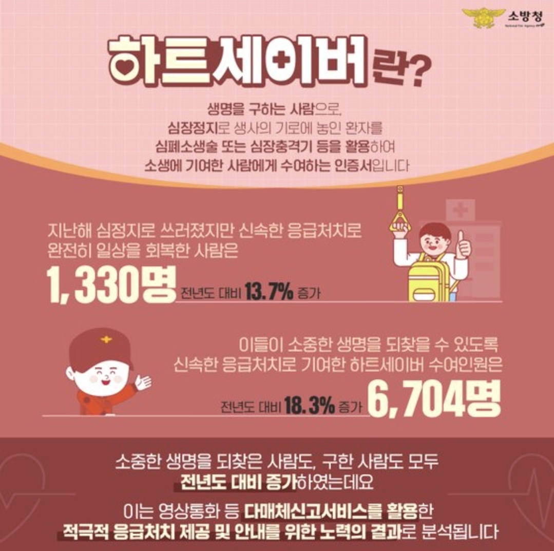 국민들의 인식과 다양한 교육 기회를 통해 심폐소생술을 익힌 시민들이 위급한 상황에 처한 시민들을 돕는 일들이 많아