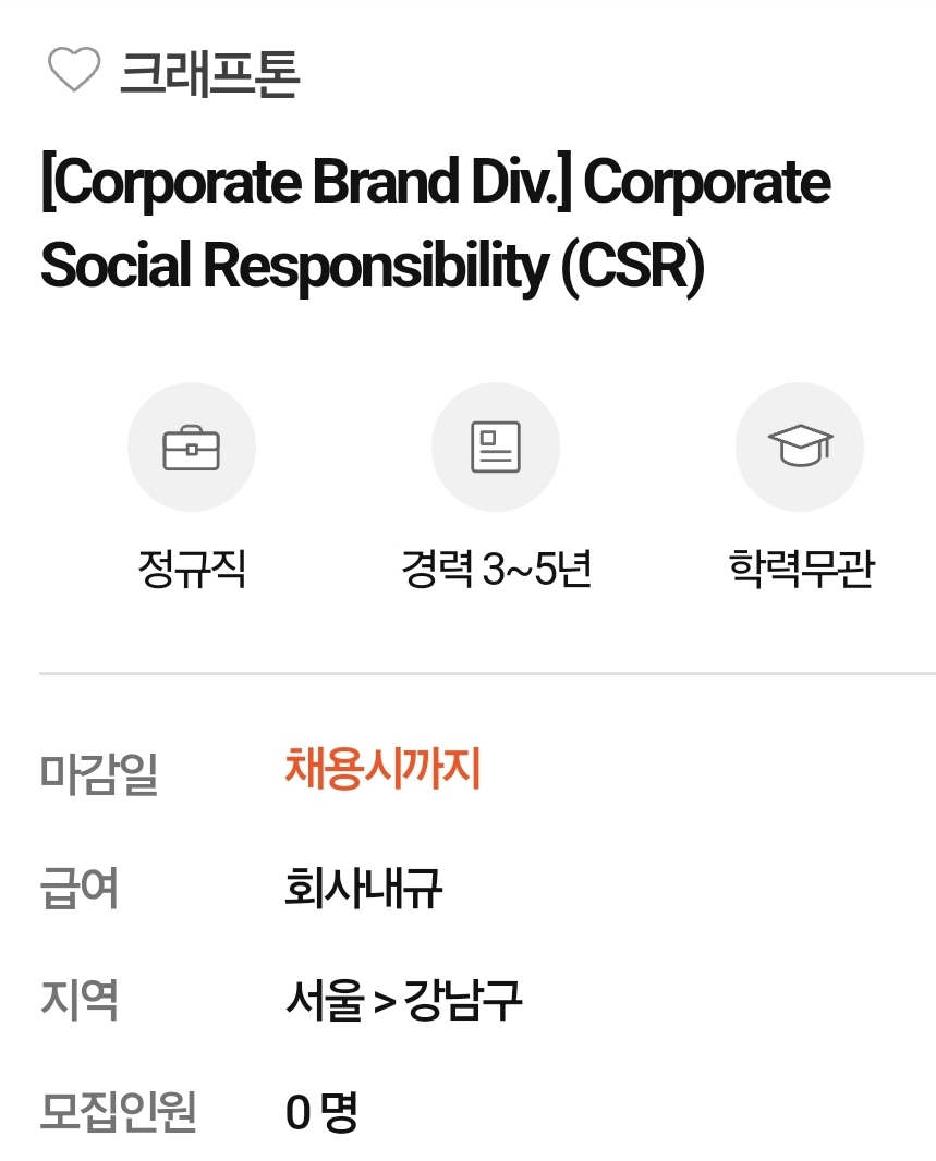 😎회사명이 없이 헤드헌팅 업체를 통한 채용정보 또는 단기계약직 등은 공유하지 않습니다.