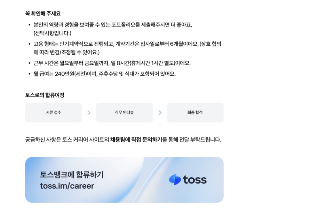 토스뱅크-CSR단기계약직