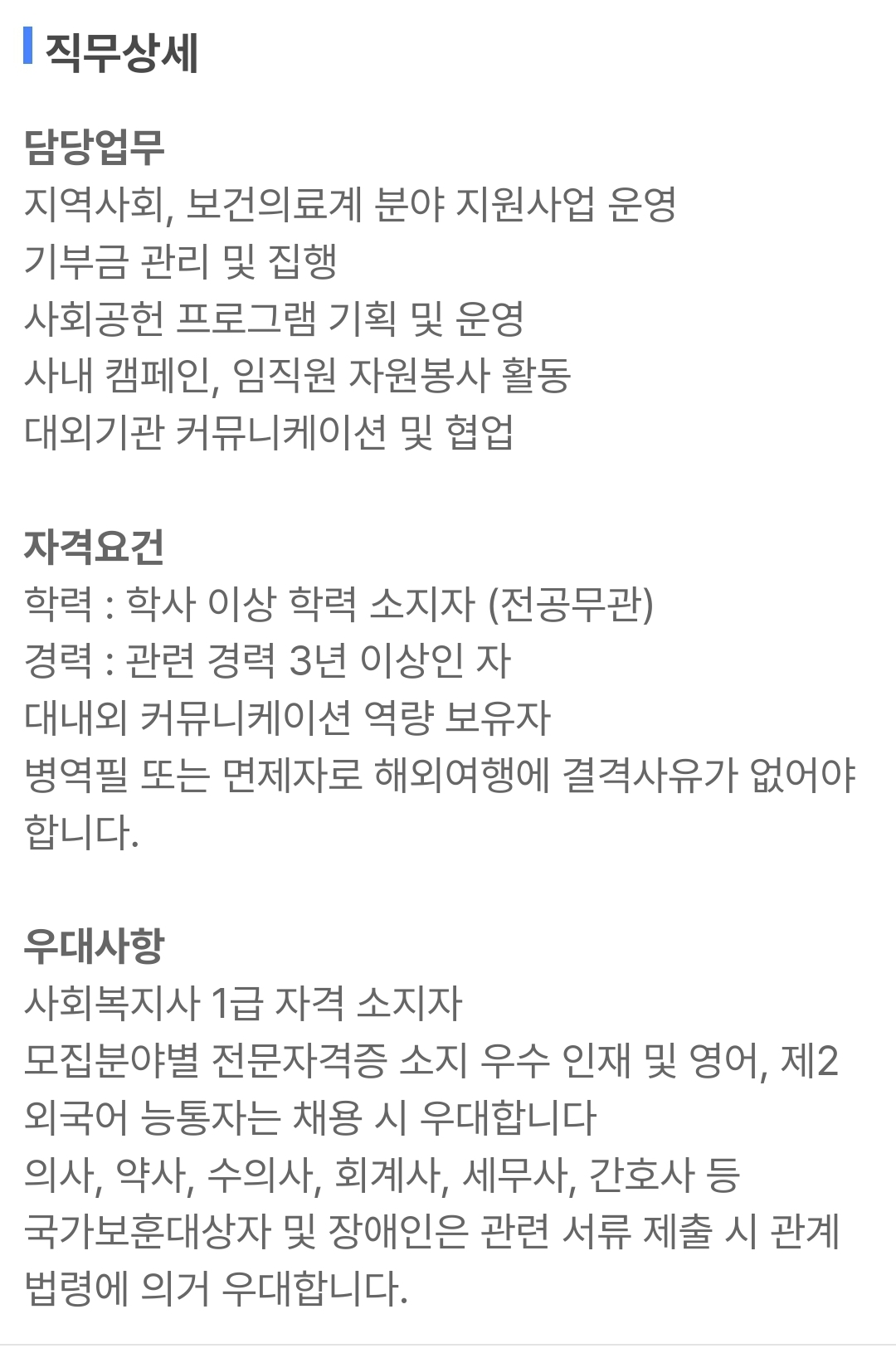 기업 사회공헌 업무 분야로 취업하기는 쉽지 않다. 자리도 많지 않고 정규직이 아닌 계약직인 경우가 많다. 기존 직원들이 사회공헌 업무를 담당하는 경우가 많아 사회복지사를 채용하는 경우가 적다. 또한 채용 경우에도 사회공헌이나 기업과 연관된 업무 경력자를 우선한다. 따라서 최대한 많은 경험을 쌓을수 있도록 준비해야 한다. 이에 기업 사회공헌 분야 채용 사례를 엄선해서 공유하고자 한다.