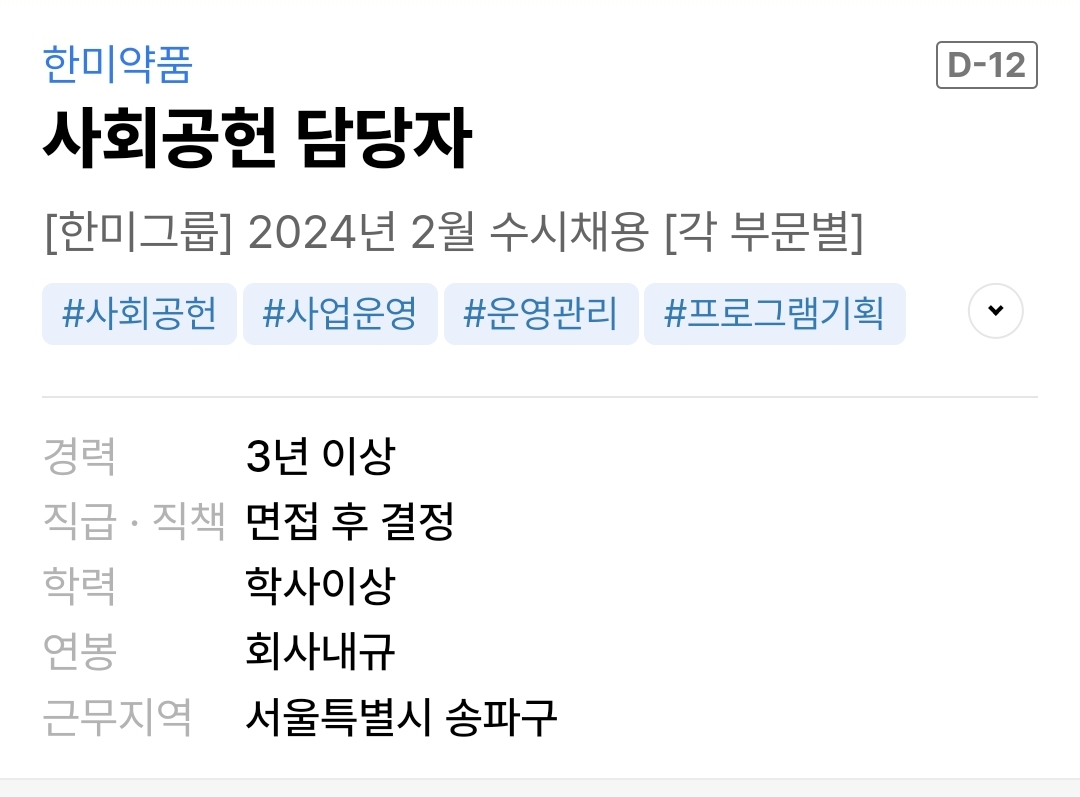 | 글로벌소비재기업 - 사회공헌 CSR 경력자 채용 (0) | 2024.01.27 |