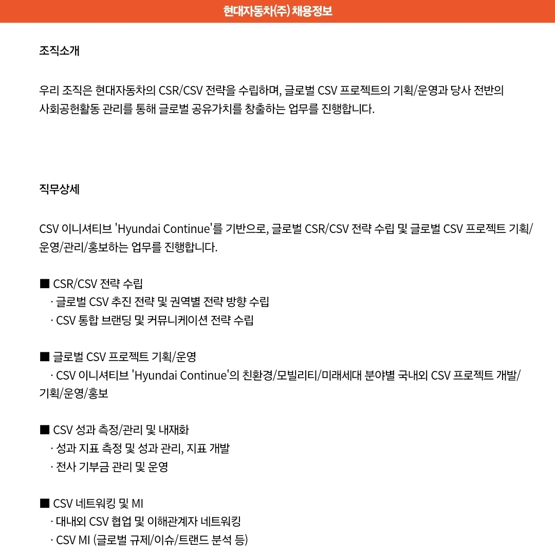 현대자동차-CSR/CSV 정규직 채용