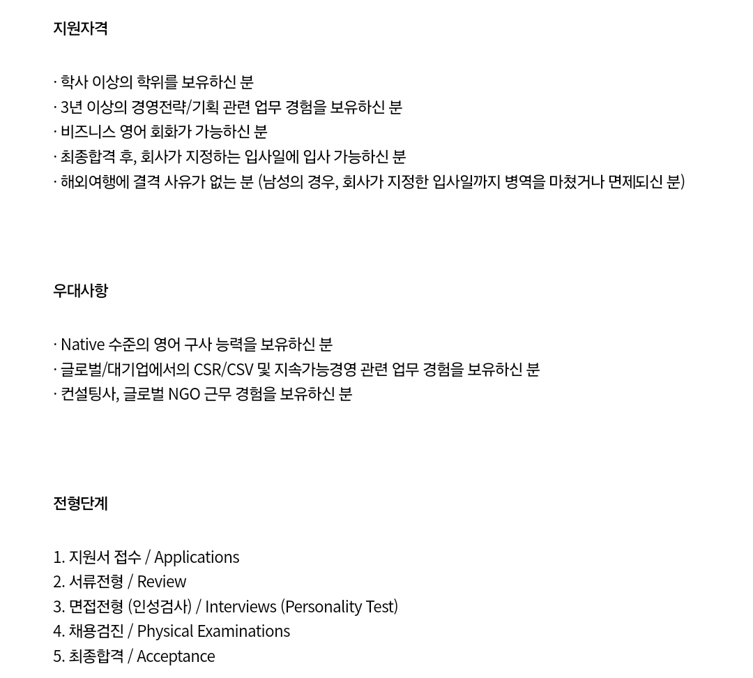 기업 사회공헌 업무 분야로 취업하기는 쉽지 않다. 자리도 많지 않고 정규직이 아닌 계약직인 경우가 많다. 기존 직원들이 사회공헌 업무를 담당하는 경우가 많아 사회복지사를 채용하는 경우가 적다. 또한 채용 경우에도 사회공헌이나 기업과 연관된 업무 경력자를 우선한다. 따라서 최대한 많은 경험을 쌓을수 있도록 준비해야 한다. 이에 기업 사회공헌 분야 채용 사례를 엄선해서 공유하고자 한다.