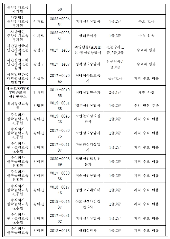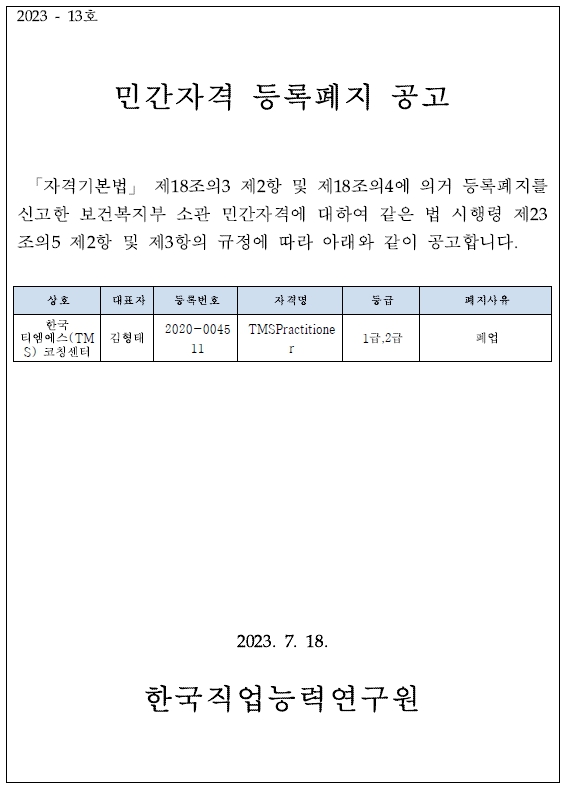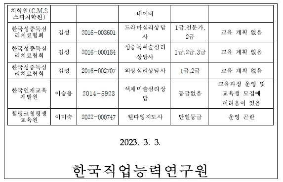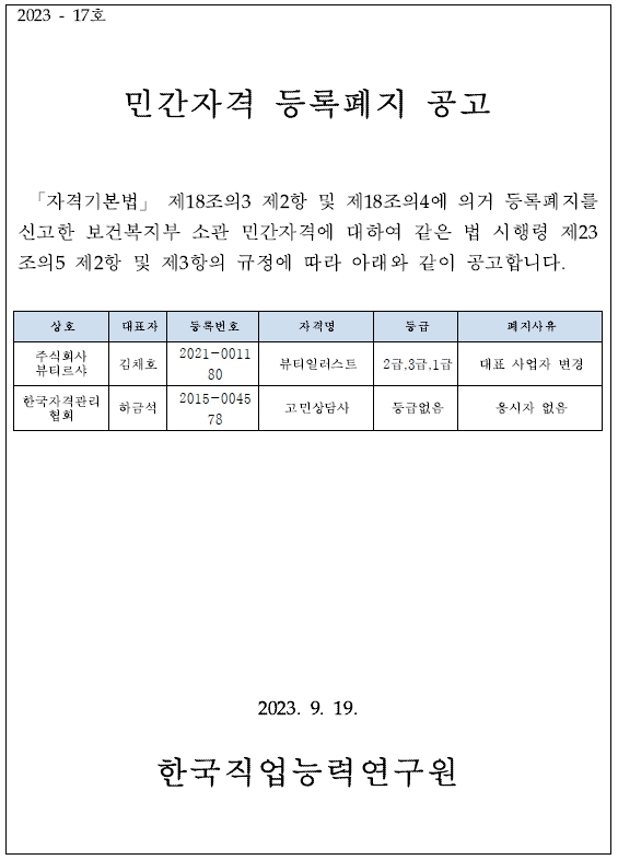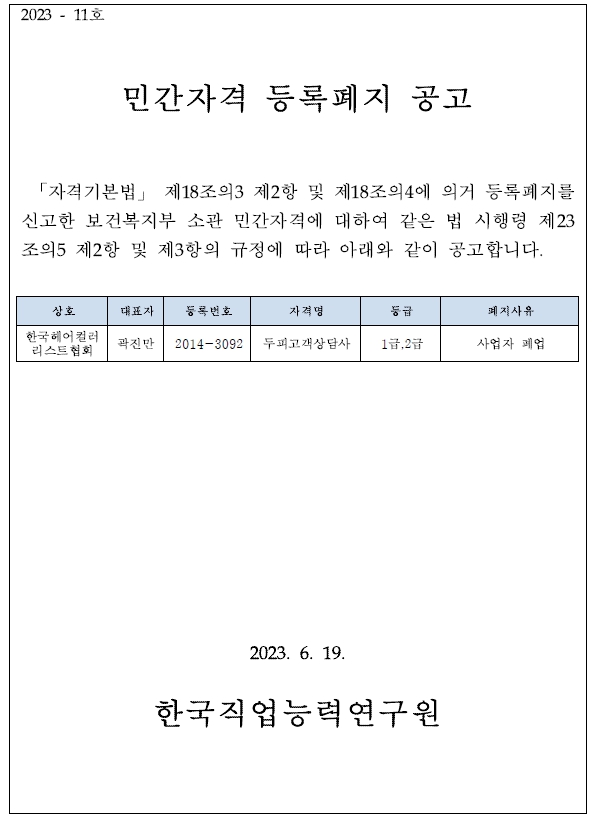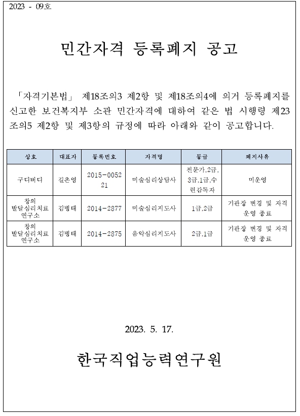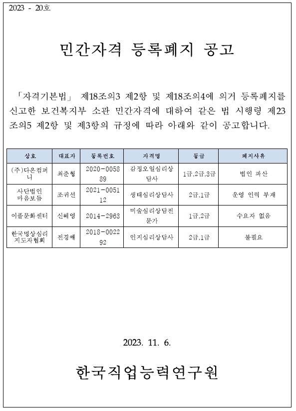 | 2024년 민간자격 등록폐지 공고(4/7기준) (0) | 2024.04.09 |