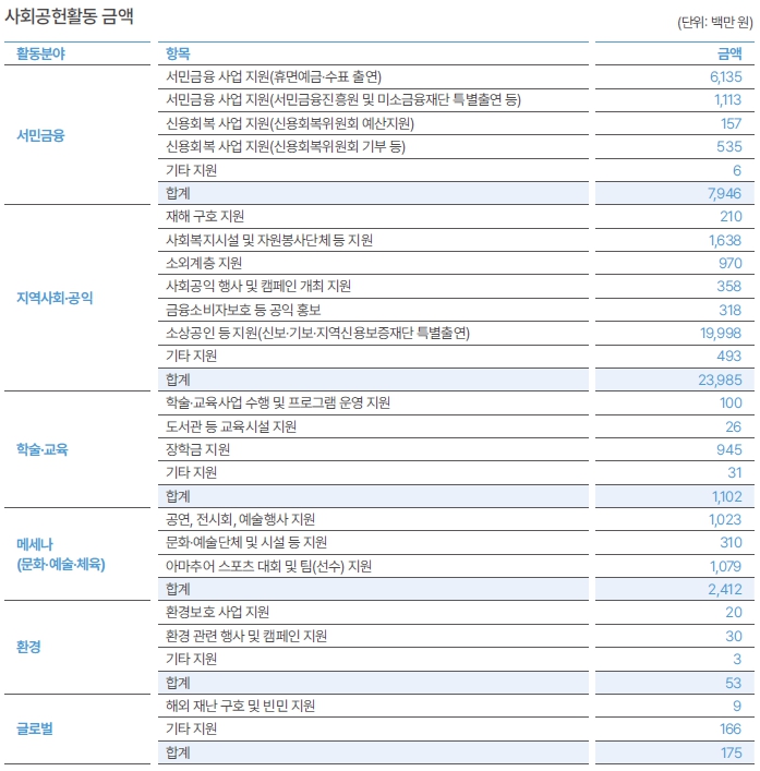 DGB대구은행 - 2023년 사회공헌 활동 실적