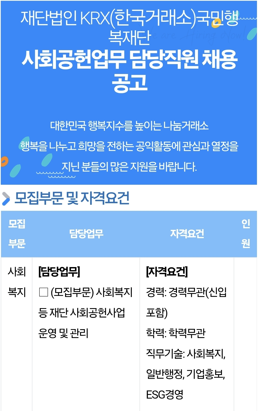 KRX국민행복재단-직원채용
