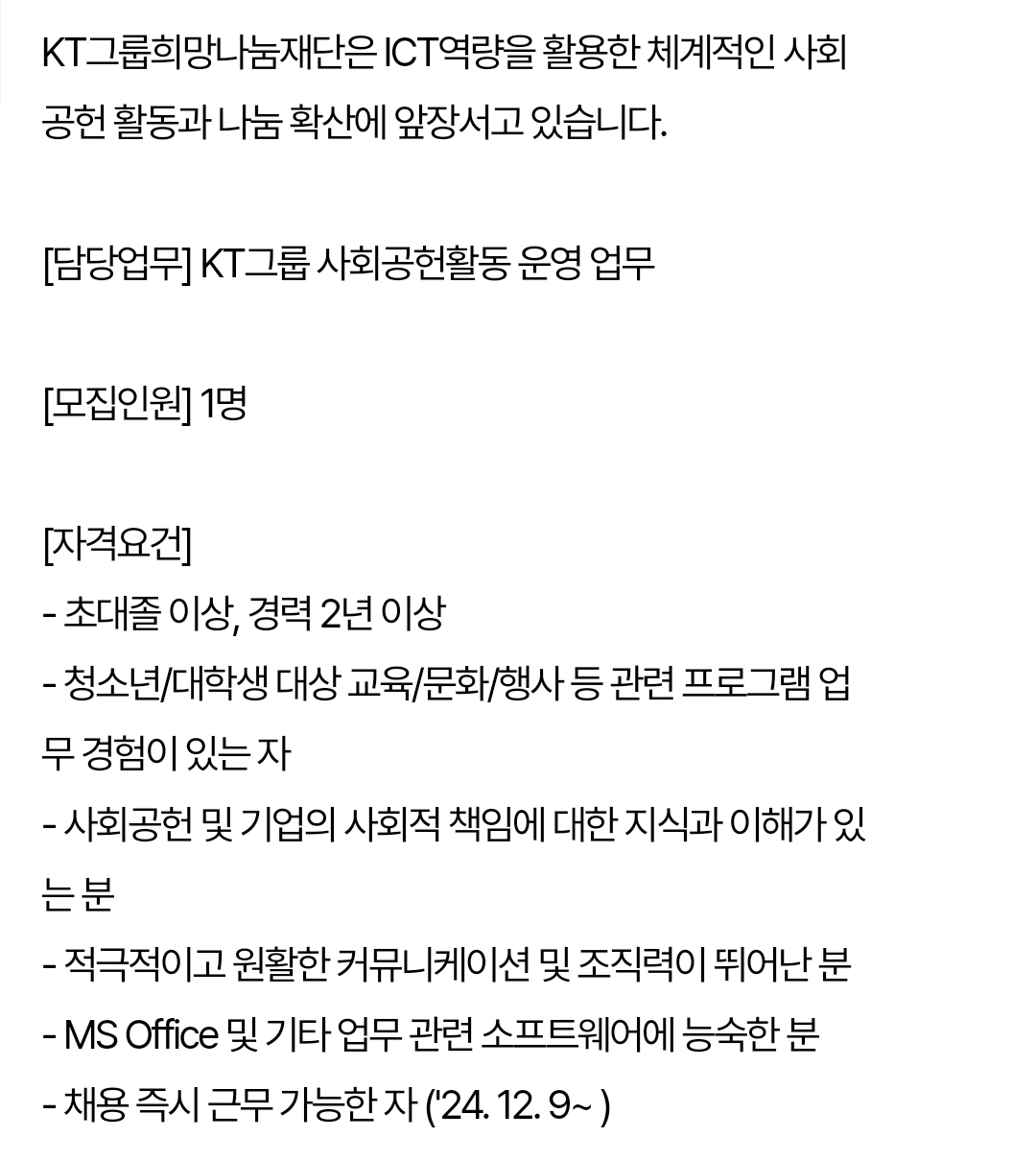 기업 사회공헌 업무 분야로 취업하기는 쉽지 않다. 자리도 많지 않고 정규직이 아닌 계약직인 경우가 많다. 기존 직원들이 사회공헌 업무를 담당하는 경우가 많아 사회복지사를 채용하는 경우가 적다. 또한 채용 경우에도 사회공헌이나 기업과 연관된 업무 경력자를 우선한다. 따라서 최대한 많은 경험을 쌓을수 있도록 준비해야 한다. 이에 기업 사회공헌 분야 채용 사례를 엄선해서 공유하고자 한다.